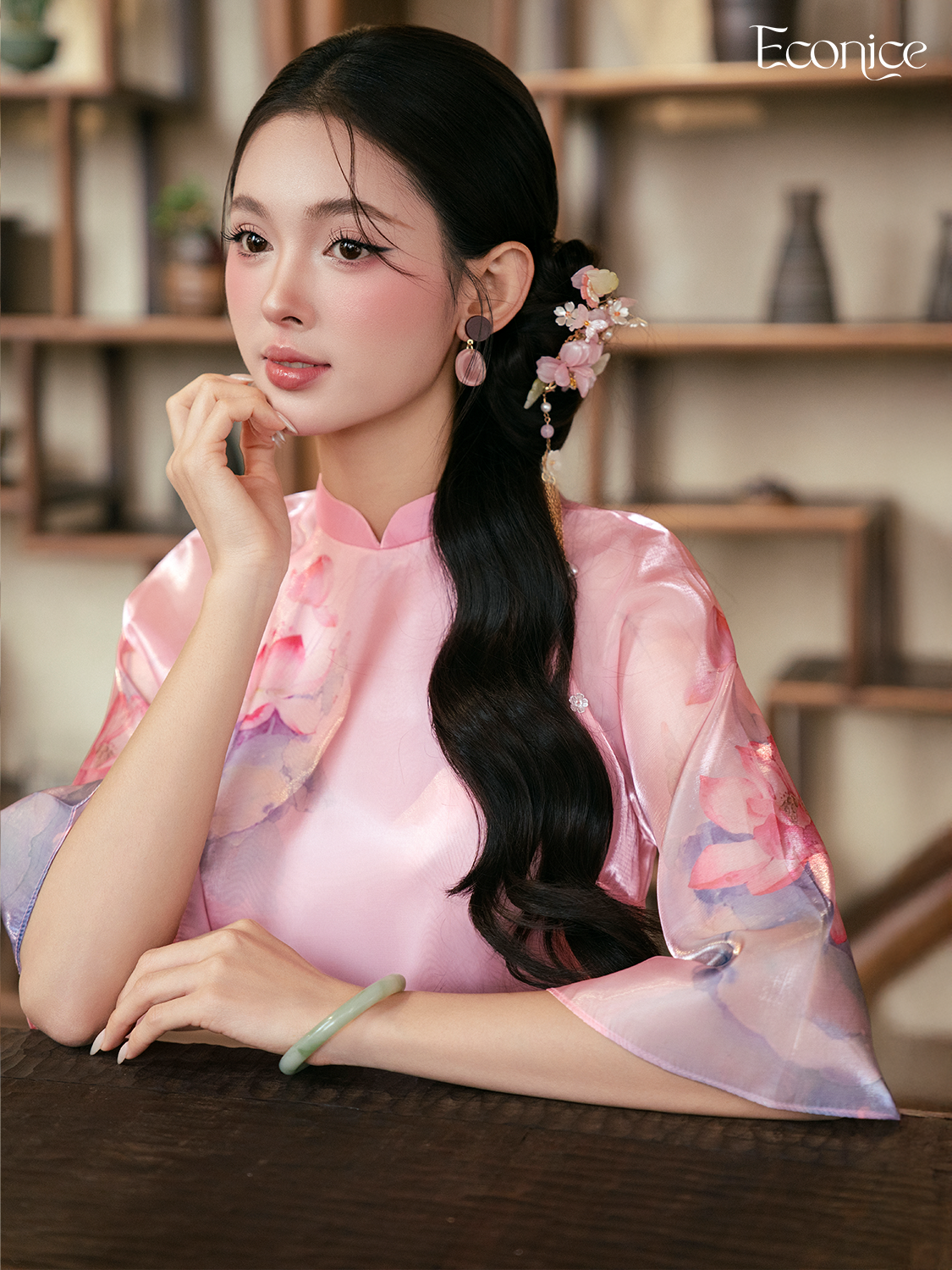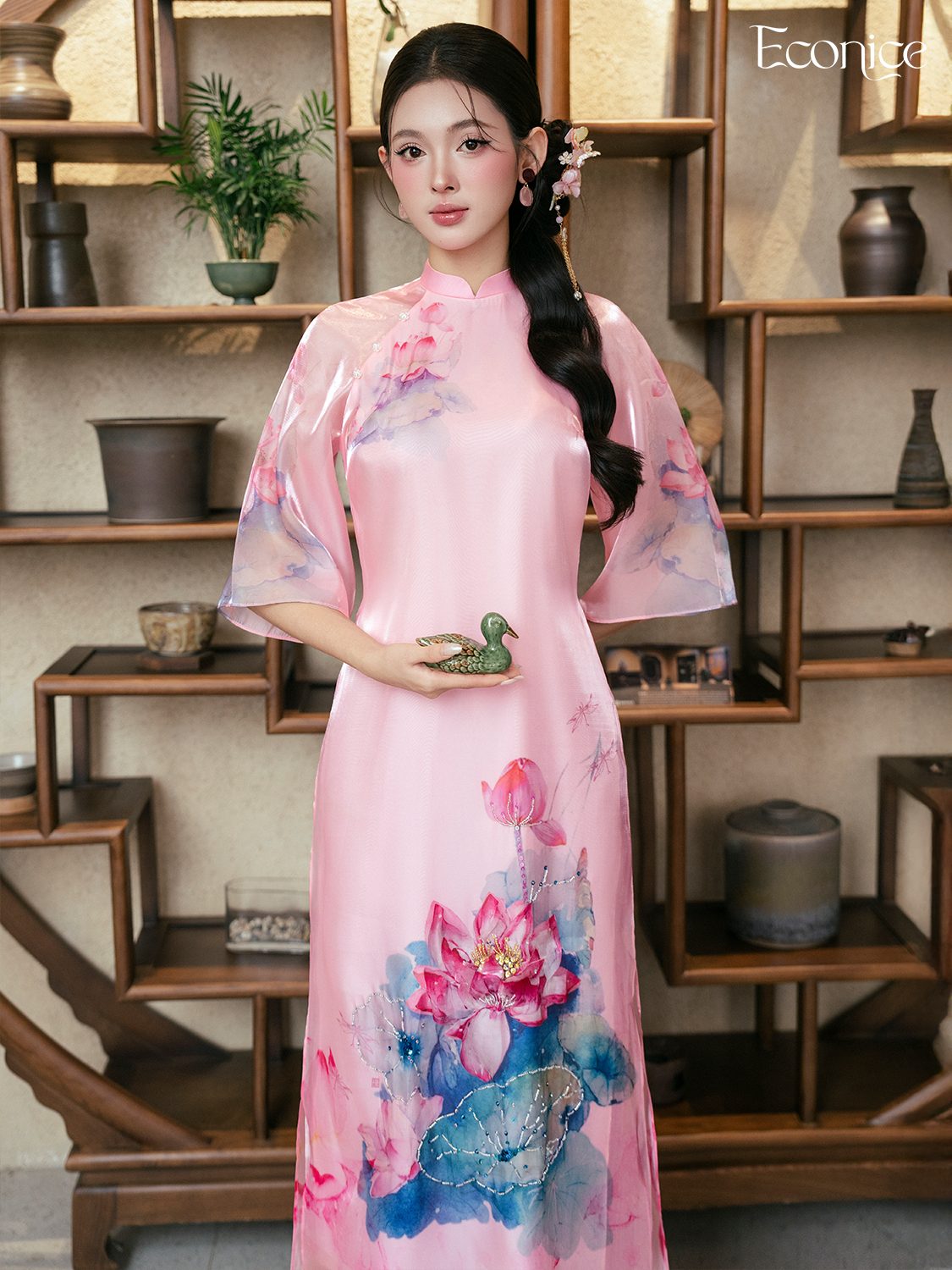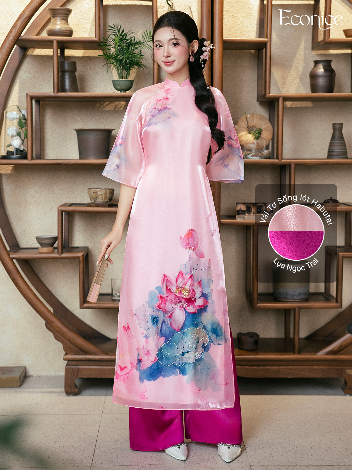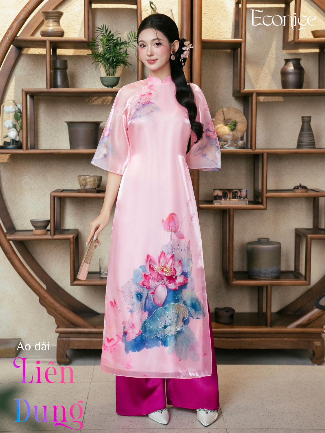 Set áo dài cách tân nữ đính kết Econice Liên Dung